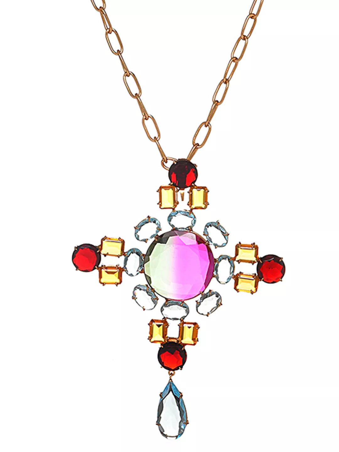 XAGO Celestia Gemstone Pendant Necklace — The Celestia Pendant Necklace from XAGO’s Enchanté Collection is a vibrant ode to color, craftsmanship, and cosmic beauty. Handcrafted with a striking pink-green gemstone at its center, encircled by radiant Hydro Garnet, Citrine, and Aqua Blue Topaz, this pendant embodies the magic of light and transformation.