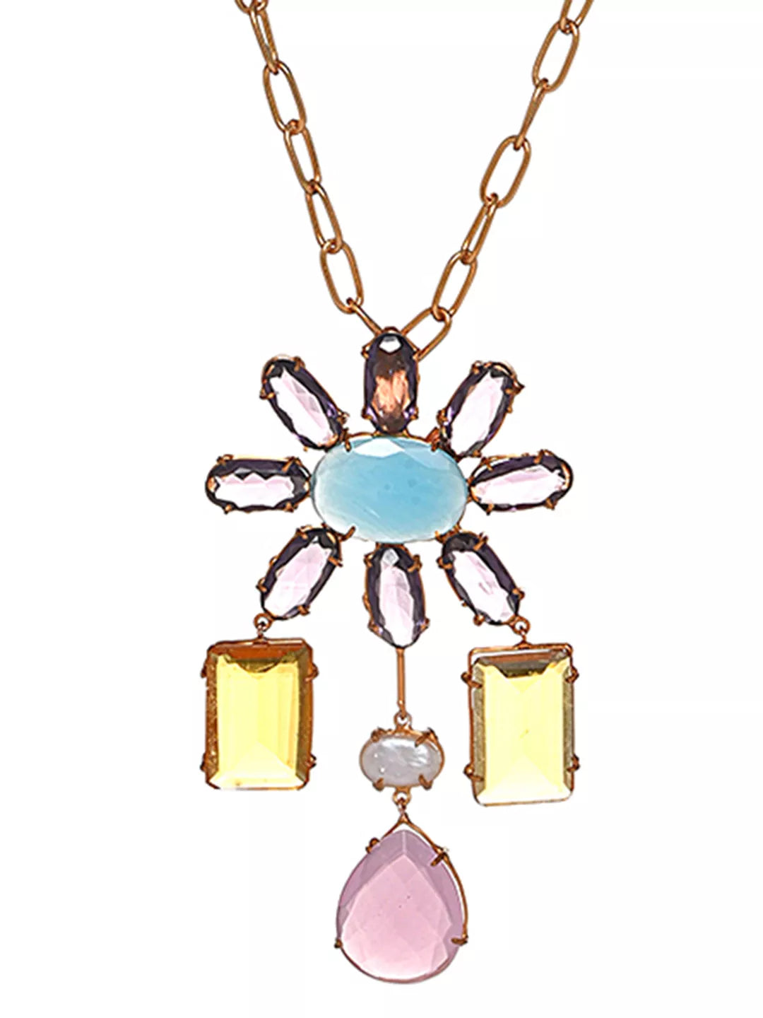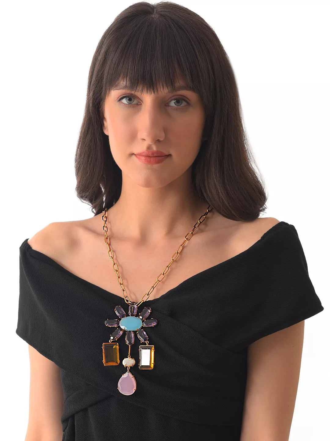 Xago Solaria Gemstone Pendant Necklace | Turquoise, Rose Quartz & Amethyst Statement Necklace